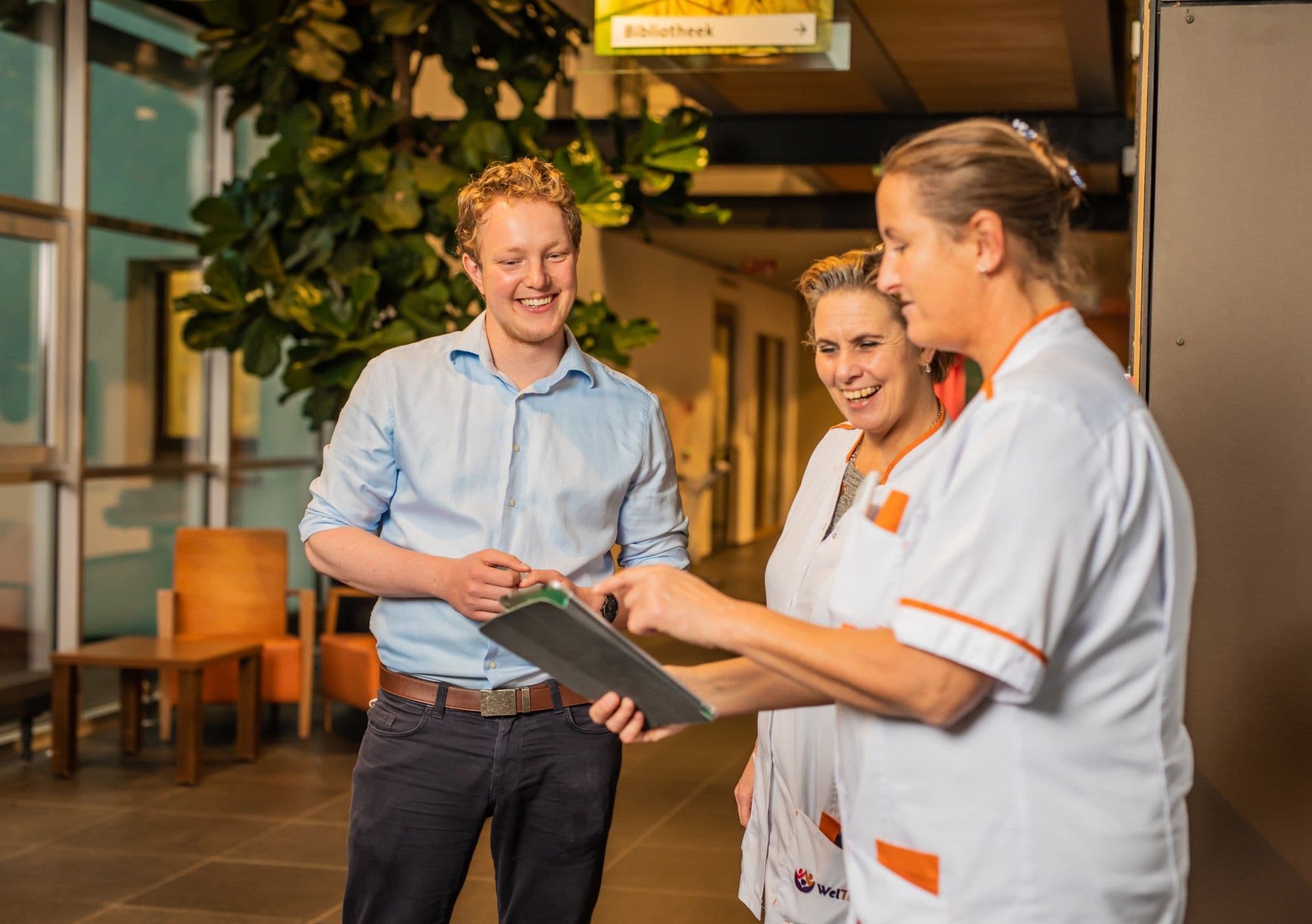 Wir nehmen die App morgens mit auf den Medikamentenwagen. Wir schauen in der App nach, wer wach ist, und gehen dann direkt dorthin, um zu helfen. So müssen wir die Bewohner:innen nicht frühzeitig wecken, im Hinblick auf die personenzentrierte Pflege.